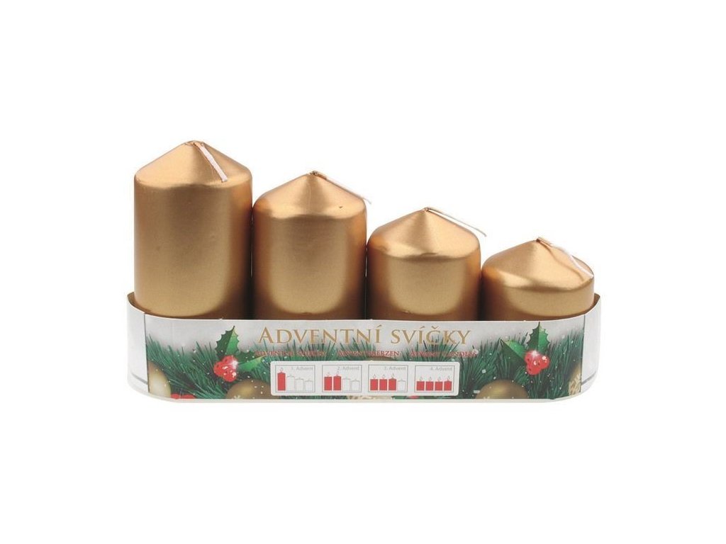 Adventní svíce stupňovaná 4ks Zlatá metalická
