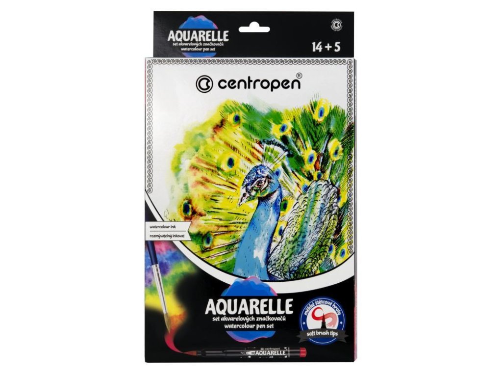 Unikátní kreativní souprava akvarelových značkovačů se štětcovými hroty značkovače jsou plněny inkoustem, který lze na speciálním papíře kombinovat a rozmývat vodou pomocí přiloženého štětce černý liner je vhodný pro dokreslení detailů a kontur na suchém obrázku souprava obsahuje 12 značkovačů, 1 štětec, 1 Detail liner a 5 ks speciálního papíru pro akvarelovou techniku šířka stopy 1 - 9 mm .Doplňkové parametry