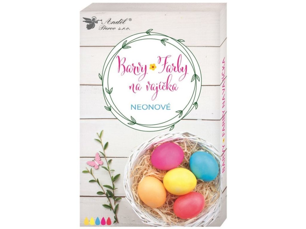 Barvy na vajíčka neonové. Vytvořte si krásná velikonoční vajíčka v neonových barvách! Sada obsahuje: 5 gelových barev (žlutá, oranžová, modrá, červená, růžová) Jedna tuba nabarví 4 - 5 vajíček.Doplňkové parametry