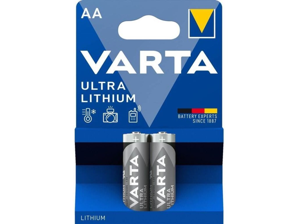 Cena uvedena za celý blistr, (2 ks baterií). Špičková baterie Varta Professional Lithium 1,5V, velikost AAA (mikrotužka), dodá digitálním a analogovým fotoaparátům extra kapacitu. Garantuje dobu skladování až po 15 let. Perfektní řešení pro energeticky náročné přístroje jako jsou digitální fotoaparáty, GPS systémy a detektory kouře. Lithiové baterie také výjimečně dobře pracují v extrémních podmínkách. VARTA Lithiové baterie snáší teplotní rozdíly od –40 °C až do +60 °C. High-tech přístroje jsou napájeny s maximálním výkonem a výdrží. Až o 38 % lehčí než běžná alkalická baterie: perfektní na sport a venkovní použití. Navíc VARTA Lithiová technologie garantuje dobu skladování až po 15 let (kromě 9V).Doplňkové parametry