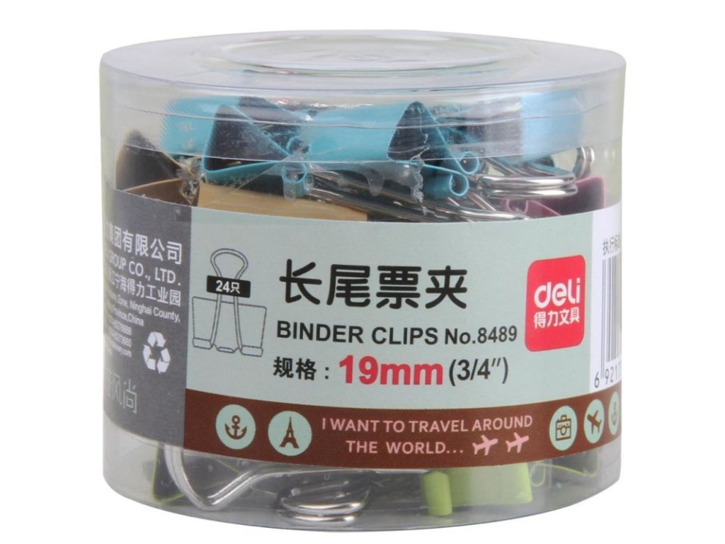 Binder klip 19mm 8489 mix barev/potisk Deli 24ks