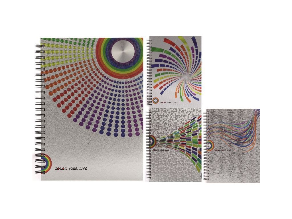 Blok s boční kroužkovou Twin Wire kroužkovou vazbou, papír 80g bez perforace. Tvrdé desky s uníkátním holografickým tiskem Linkovaný bílý papír. Vhodný pro studenty, školáky i dospělé. V nabídkce jsou 4 barvy, fialová, oranžová, zlatá, tyrkysová. Efektní holografický potisk. Cena za 1 kus.Doplňkové parametry