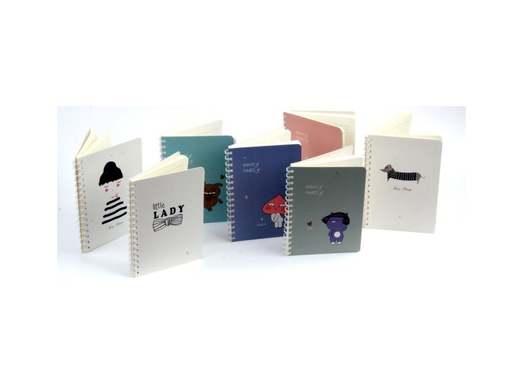 Tvrdé desky, boční spirála, linka. 80 listů, 80g. Velikost 140mm x 208mm. Celkem 46 designů.Doplňkové parametry