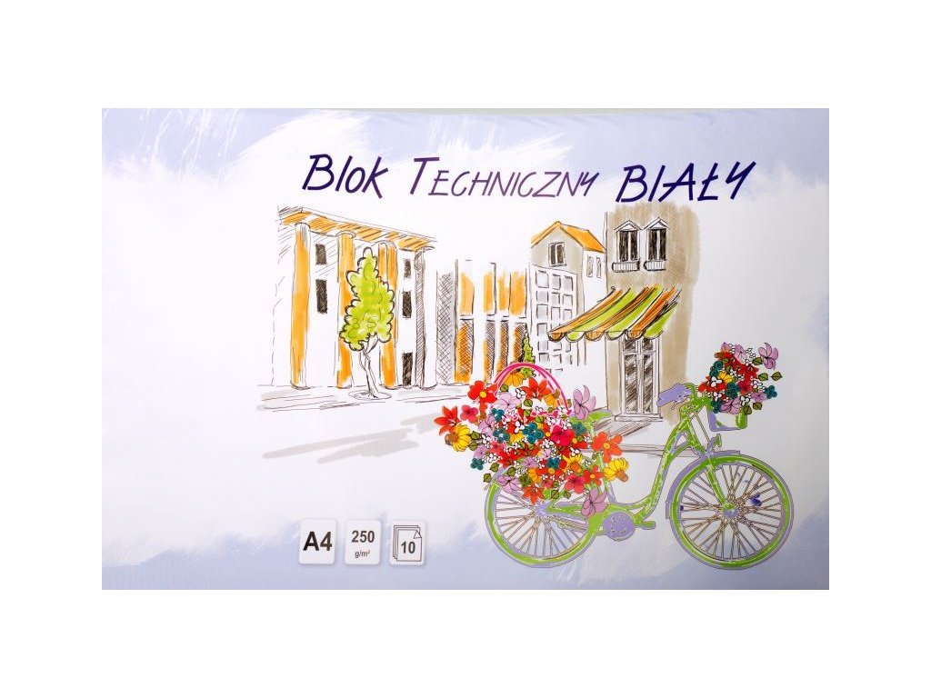 Blok technických papírů, skicák, bílé kartony 250g, 10 listů. Vhodné pro náčrtky, kreslení a malování, stříhání, lepení, doma i ve škole.Doplňkové parametry