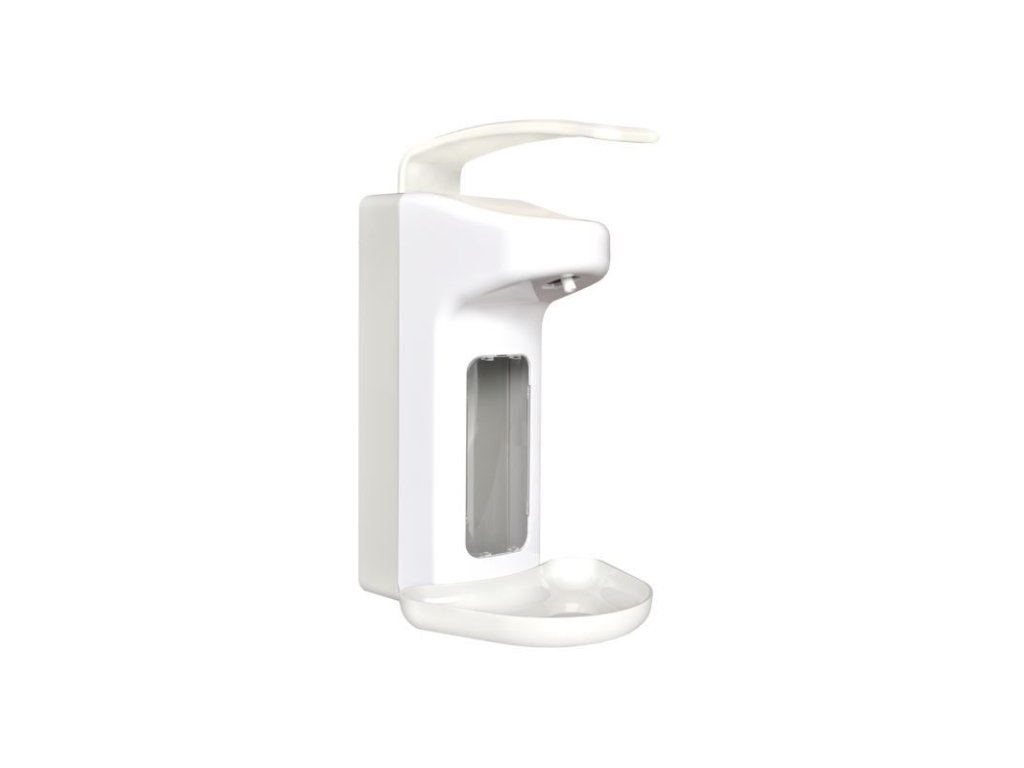 Odolný dávkovač z bílého a šedého ABS plastu s odkapávací miskou, určený pro profesionální použití v potravinářství, zdravotnictví, nebo ve veřejných prostorách. Dávkovač je určen pro hygienické dávkování tekutých mýdel, krémů na ruce nebo dezinfekcí na ruce. Robustní páka se snadno ovládá loktem. Na spodní části je umístěna odkapávací vanička, která zabraňuje znečišťování okolí dávkovače. Lze ji snadno vyjmout pro čištění, nebo v případě že ji uživatel nepotřebuje. Dávkovač je možné nastavit na dávku od 0,8 ml pro krémy, 1,2 ml pro mýdla až 1,8 ml pro dezinfekce, dle podle potřeby provozu. Průhledné okno v přední části dávkovače umožňuje velmi snadnou orientaci v přípravcích vložených do dávkovače. Velký přehledný nápis na etiketách mýdel a krémů MEDISPENDER zaručuje správné použití přípravků uživatelem. Velmi snadné ovládání dávkovače při výměně náplně (tekutého mýdla, krému, dezinfekce) šetří Váš čas při udržování hygieny na pracovišti.Doplňkové parametry