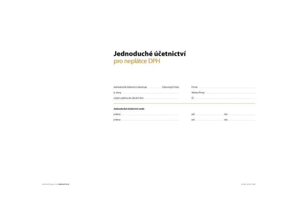 Nahrazuje dřívější "Jednoduché účetnictví pro neplátce DPH", nepropisovací ,formát A4 na šířku, 32 listůDoplňkové parametry