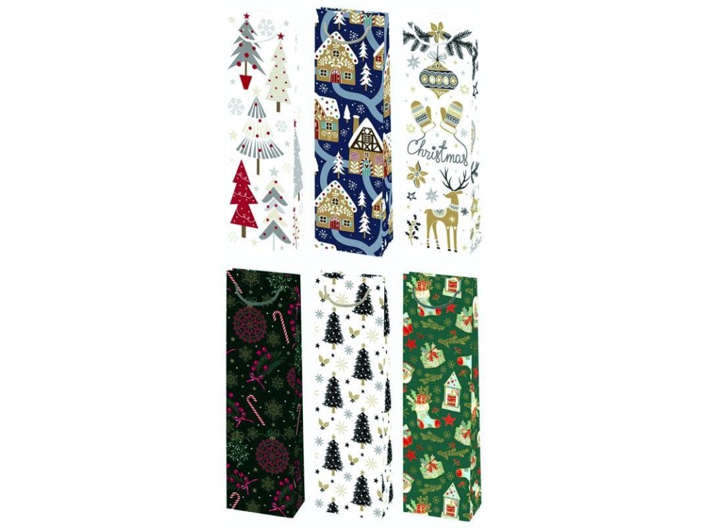 Dárková taška papírová na láhev s látkovými uchy s vánočními motivy. Bal 10ks. Cena za 1ks.Doplňkové parametry