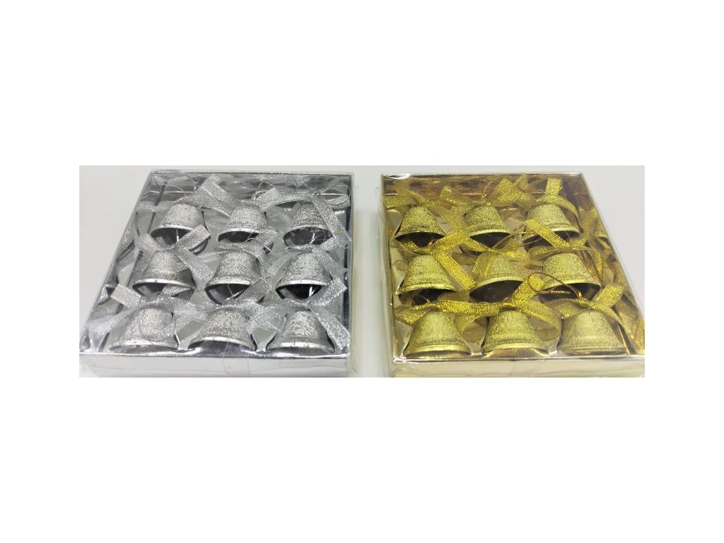 Dekorace zvonečky 9407 9ks zlaté/stříbrné