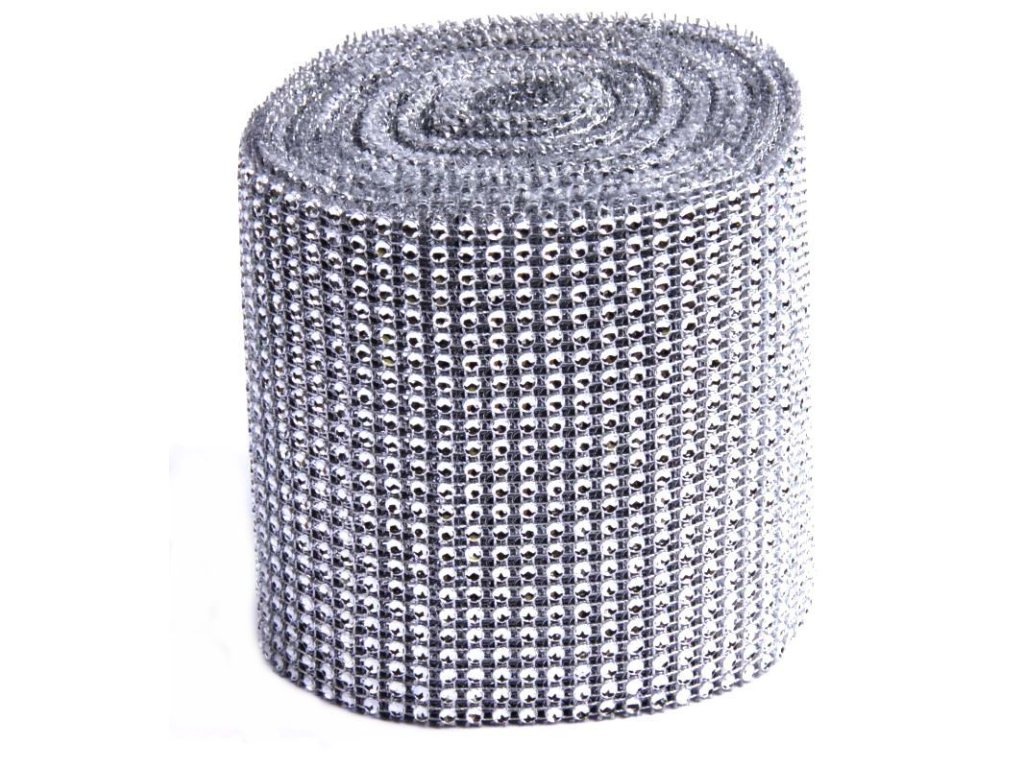 Dekorativní látka s kamínky 12cmx9m 202840 Stříbrná