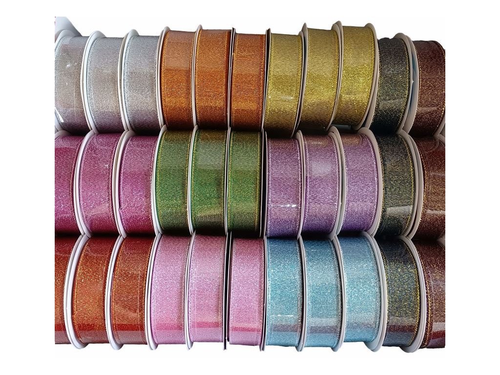 Dekorativní stuha látková lesklá, vhodná pro balení dárků, šírka 2cm, délka návinu 270cm, mix 9 barev (černá, růžová, zelená, žlutá, bronzová, fialová, modrá, stříbrná, hnědá) balení 33ks, cena za 1 návin.Doplňkové parametry