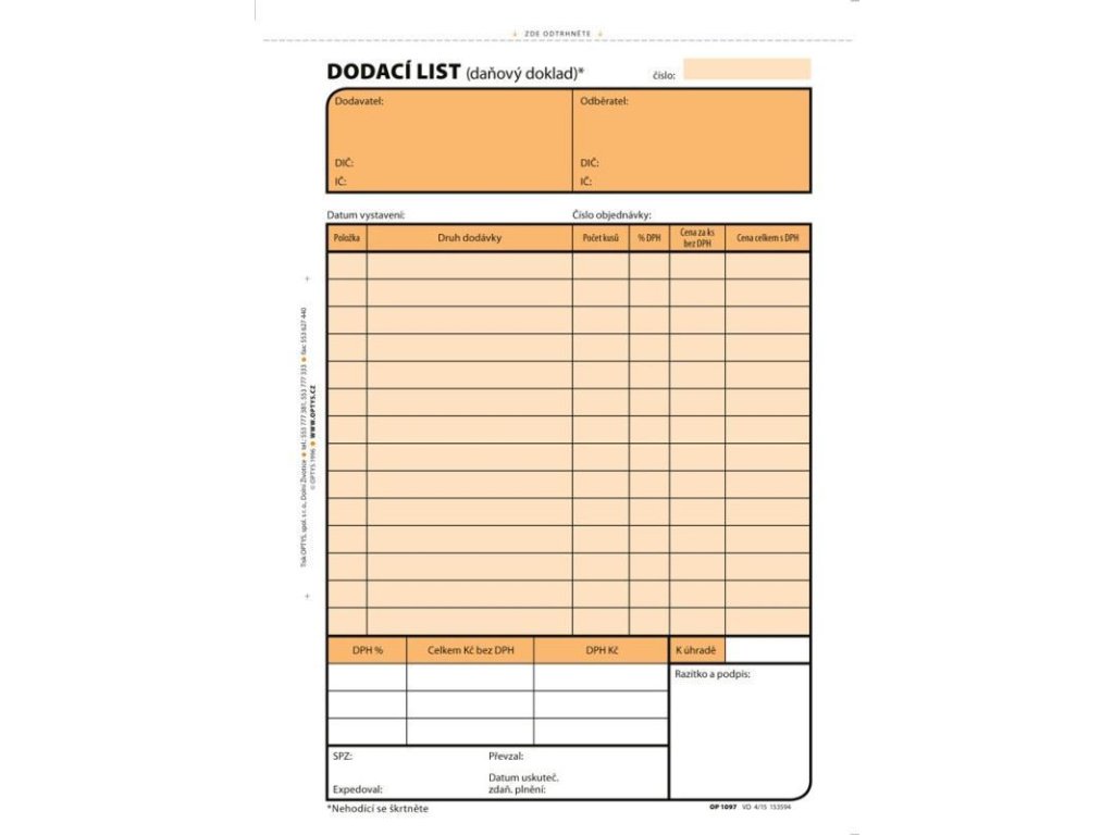 Dodací list A5, samopropisovací, lepení v hlavěDoplňkové parametry