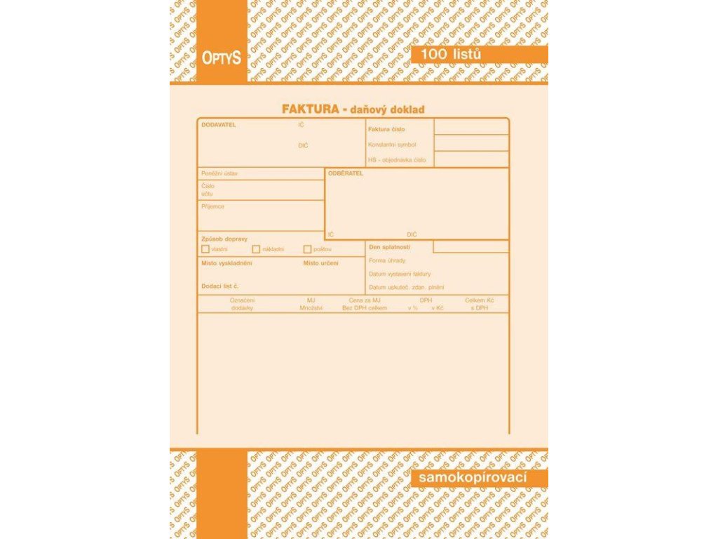 Tiskopis je dle nové legislativy přizpůsoben pro 3. daň z přidané hodnoty, došlo tedy k rozšíření kolonek. Samopropisovací, nečíslovaná. Formát A5 na výšku. Obsahuje 100 listů odtržitelných perforací, se zakládacím děrováním.Doplňkové parametry