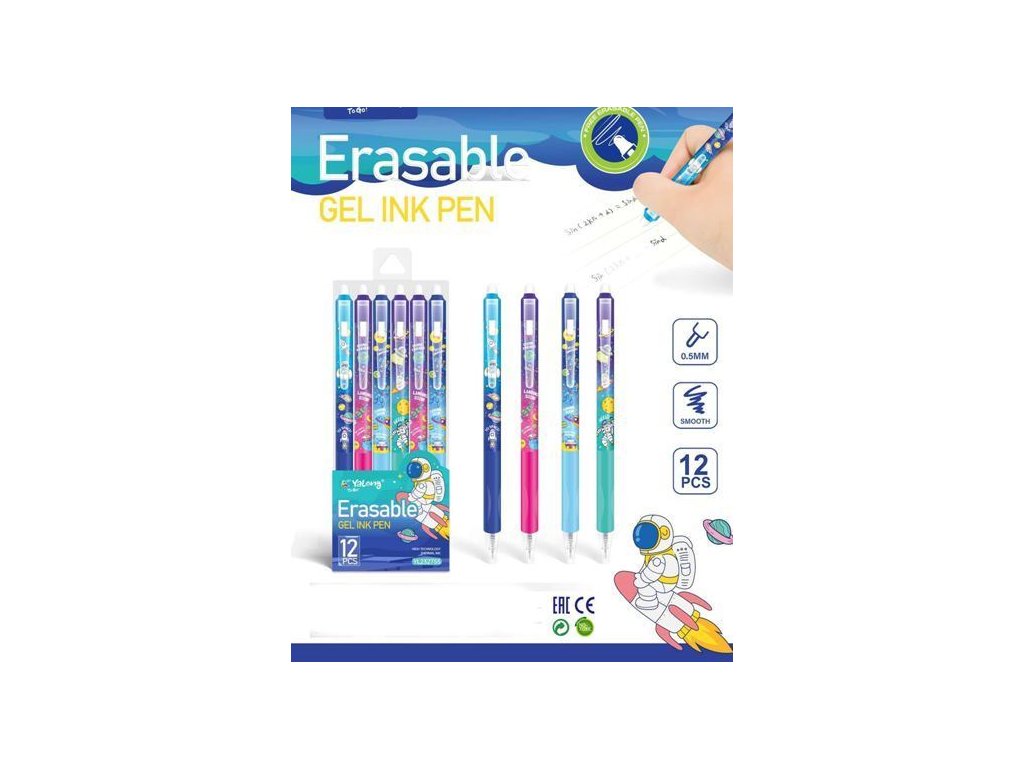 Gumovací psací kuličkové pero, kliker, ve 4 barevných provedeních, viz obrázek, psací stopa modrá 0,5mm, píše hladce, jednodušše lze vygumovat a text opravit. Pero má gumový protiskluzový trojhranný úchop, barevná kombinace viz obrázek. Balení 12ks, cena za 1ks. Náhradní náplně, objednací č: 980014Doplňkové parametry