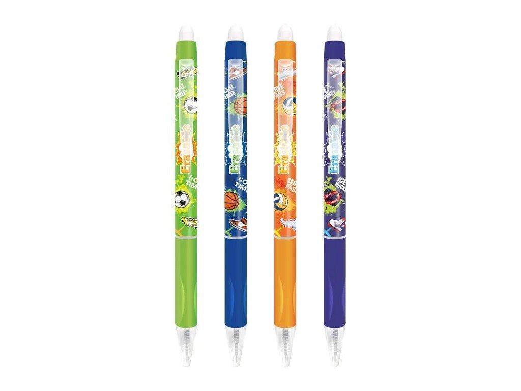 Gumovací psací kuličkové pero, kliker, ve 4 barevných provedeních, viz obrázek, psací stopa modrá 0,5mm, píše hladce, jednodušše lze vygumovat a text opravit. Pero má gumový protiskluzový trojhranný úchop, barevná kombinace viz obrázek. Balení 12ks, cena za 1ks. Náhradní náplně, objednací č: 980014Doplňkové parametry