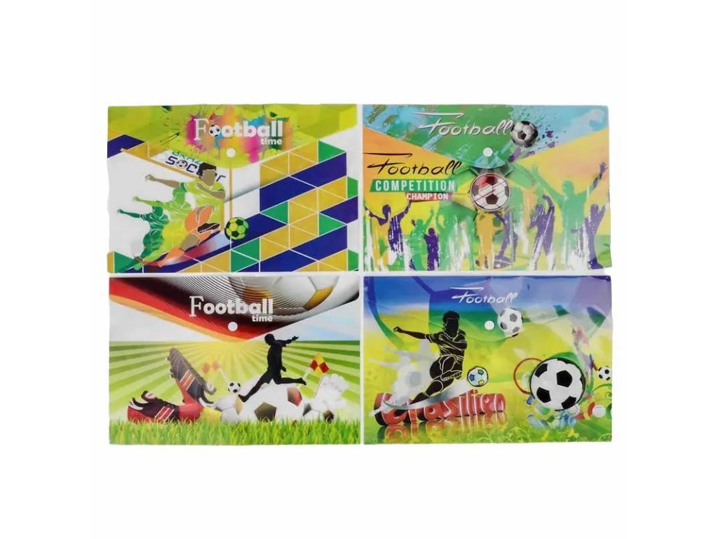 Kapsa na dokumenty, velikost A4, zapínání na patent. Mix 4 druhy fotbalových obrázků. Cena za 1ks.Doplňkové parametry