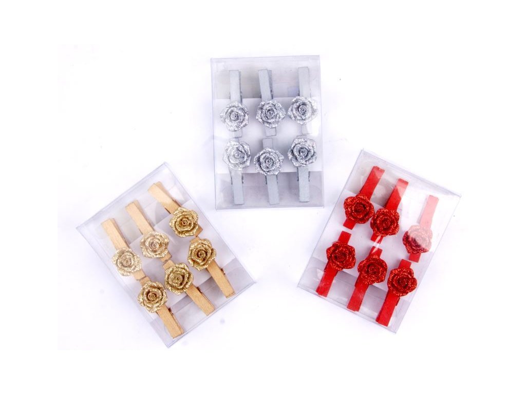 Kolíček s růží 6ks - 1298 červená