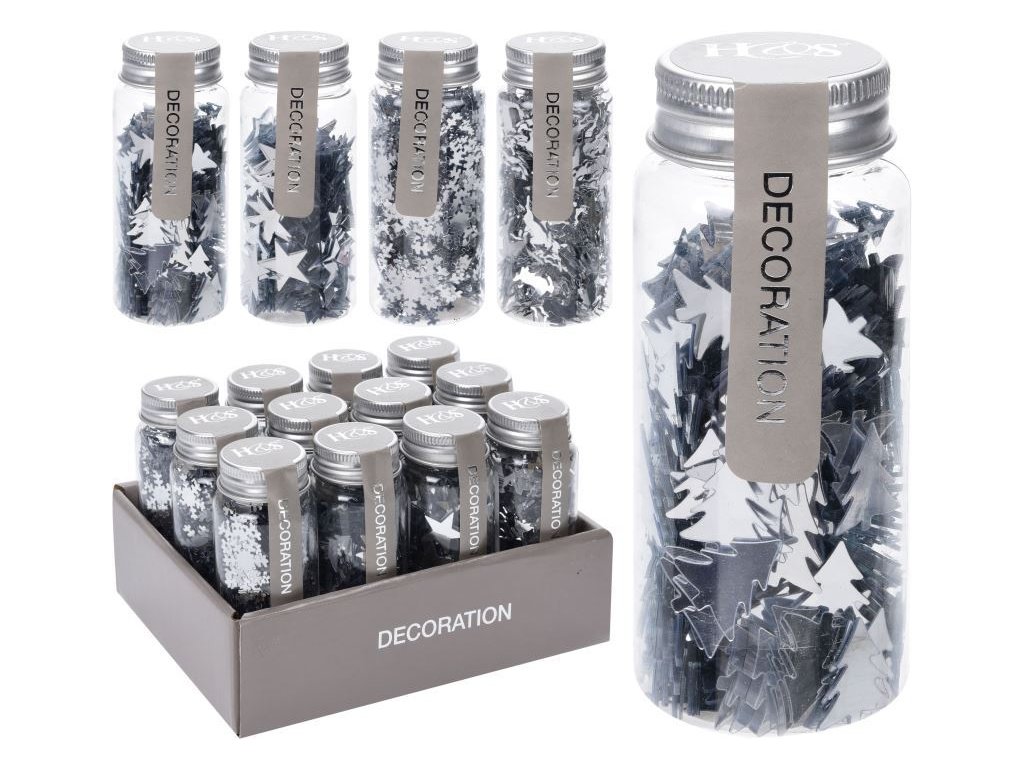 Luxusní vánoční konfety, ve skleničce, mix motivů, zvězdy, vločky, stromky, sobiDoplňkové parametry