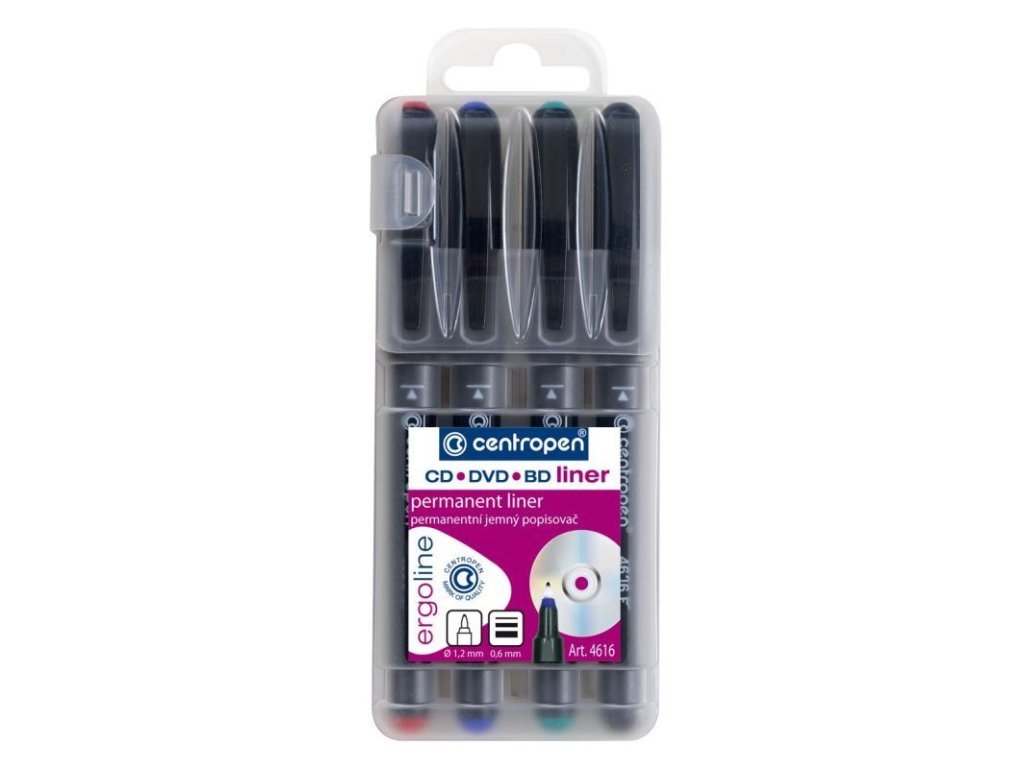 Liner s novým ergonomickým designem,na popisy CD, DVD, BD disků,permanentní inkoust,alkoholová báze,jemný plastový hrot,šířka topy 0,6 mm.Doplňkové parametry