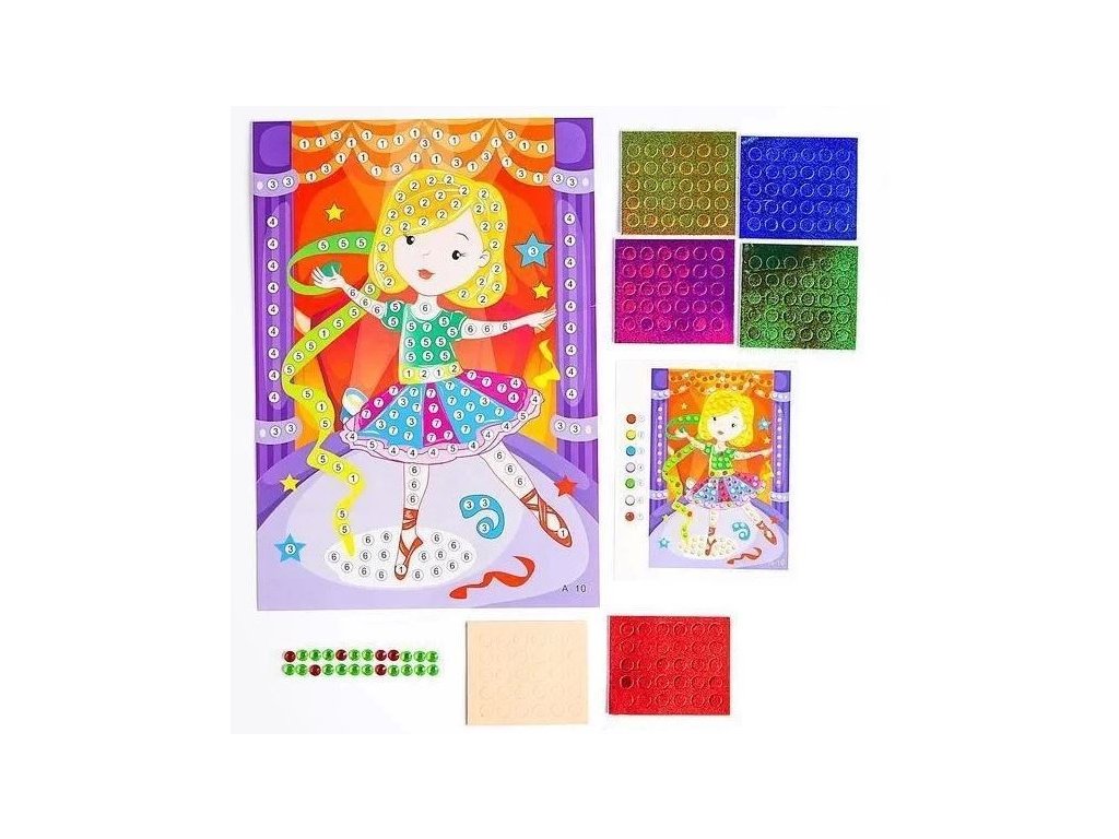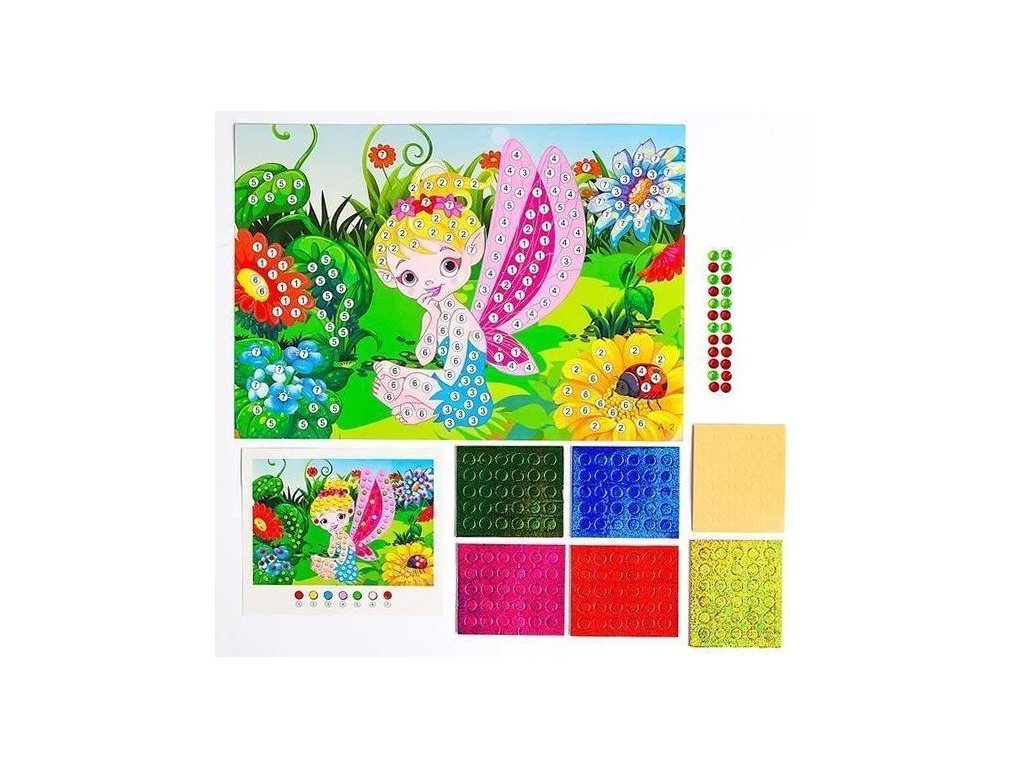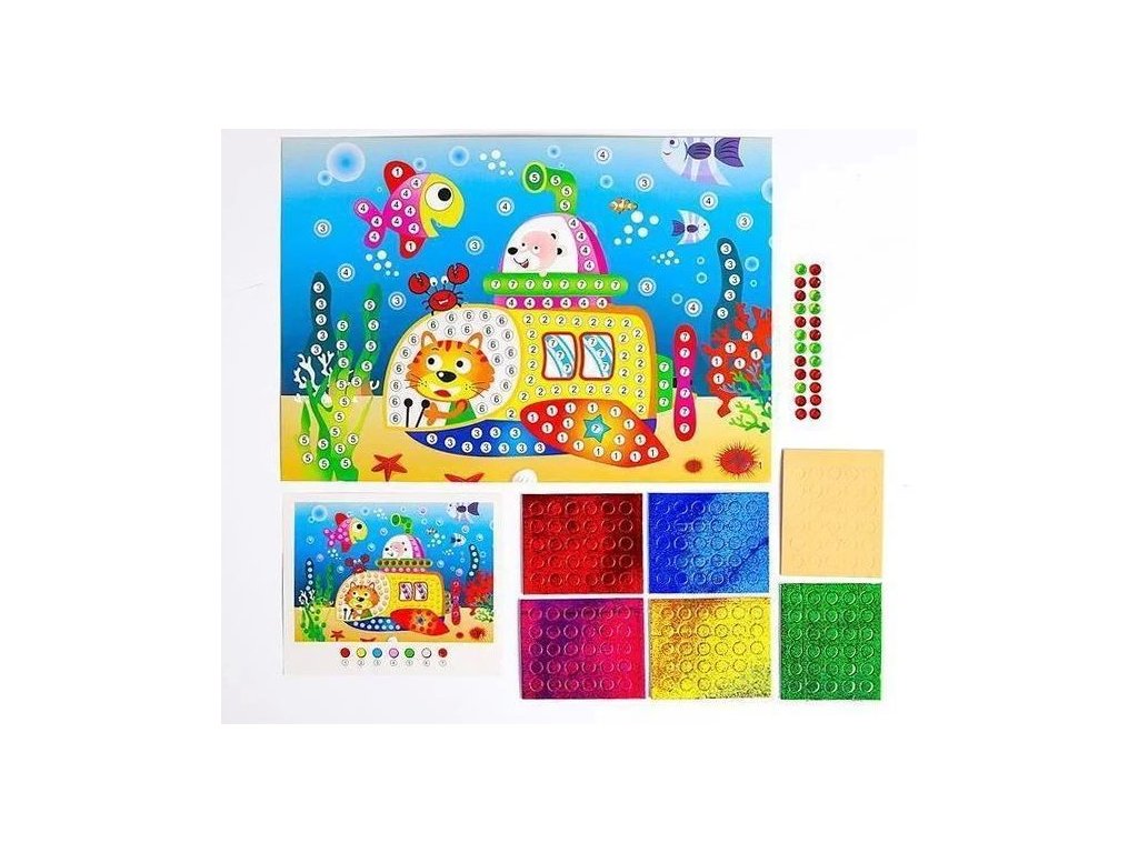 Mozajkový obrázek se samolepicími kolečky a kamínky. Kreativní sada pro děti, které si rády hrají s barvami a tvořením. Dítě dotváří barevný obrázek pomocí samolepicích kamínků, které lepí podle barevného označení. Rozvíjí jemnou motoriku, trpělivost a smysl pro detail. Nevhodné pro děti do 3let.Doplňkové parametry