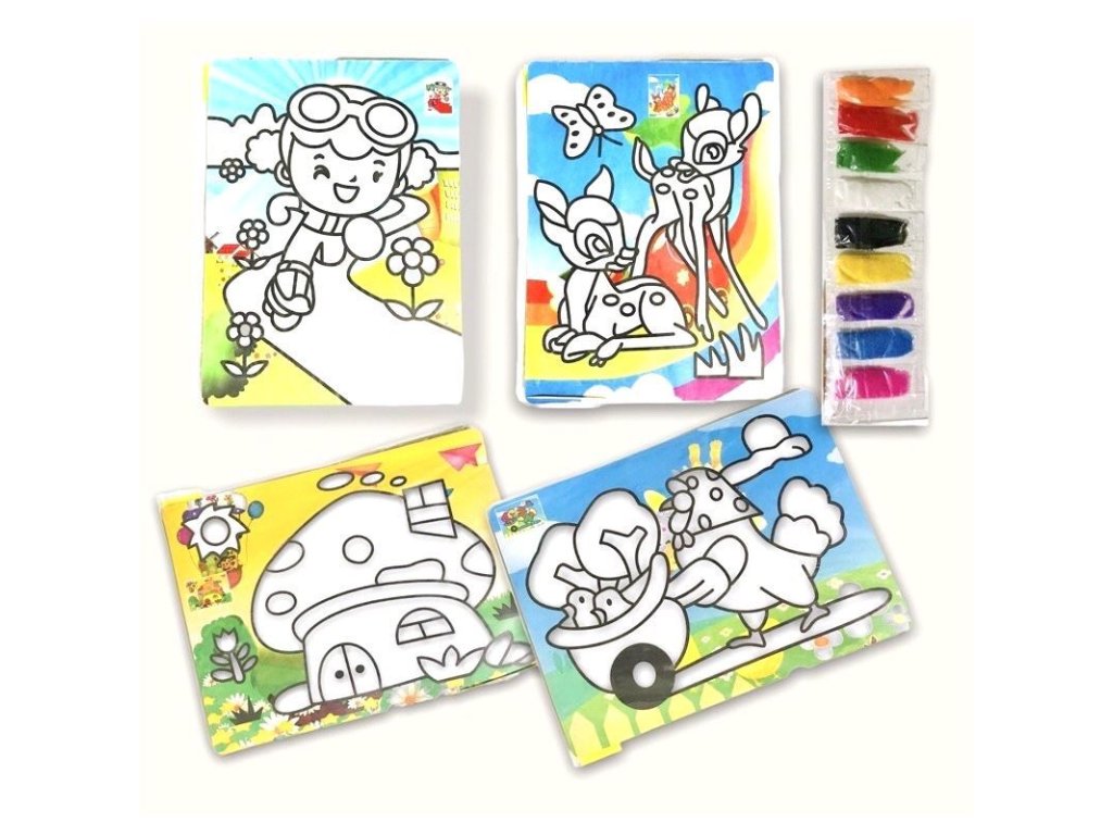 Mozaikový obrázek – písková technika (27 × 20 cm) Kreativní sada pro děti, které rády tvoří. Obrázek je vyřezaný z lepivé předlohy – stačí odlepit jednotlivé části a posypat je barevným pískem, který se přichytí na lepicí plochu. Jednoduchá a zábavná technika, která nevyžaduje lepidlo ani nůžky. Nevhodné pro děti do 3let.Doplňkové parametry