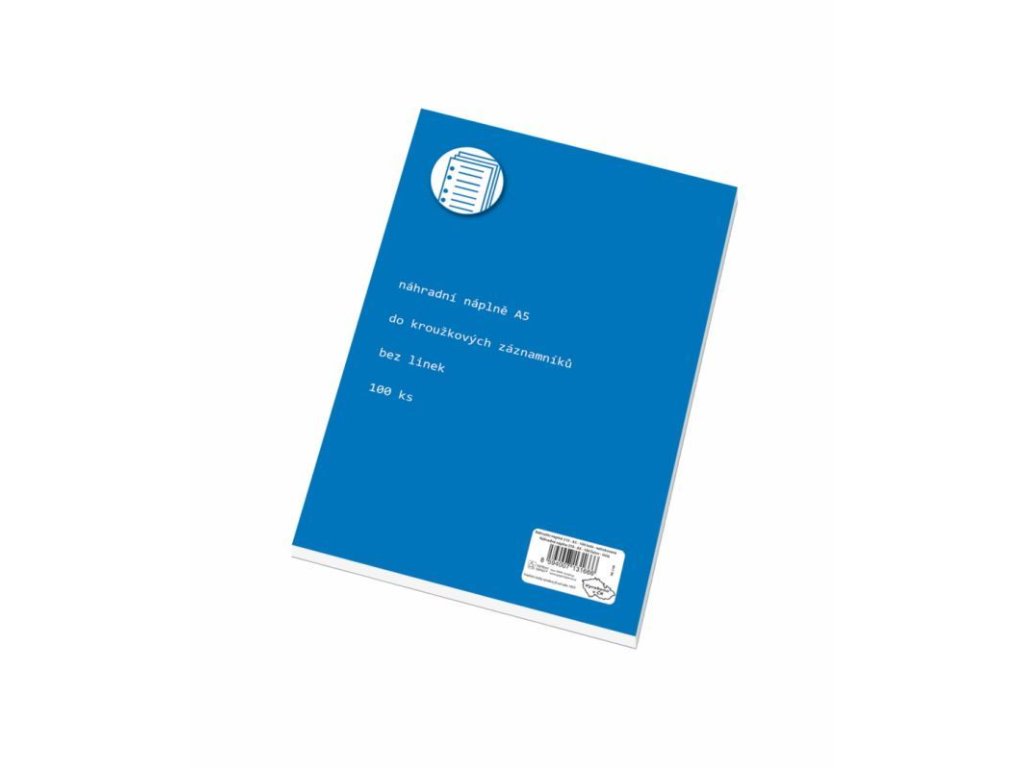 Náhradní náplň do velkých zápisníků s 4 kroužkovou mechanikou.Čistý papír. Rozměry 148 × 210 mm (formát A5) 100 listů Vyroben z hladkého bezdřevého papíru. Krycí list z lesklého křídového papíru. Typizované děrovaní pro zakládání do kroužkových mechanik (karis bloků), pořadačů či rychlovazačů.Doplňkové parametry
