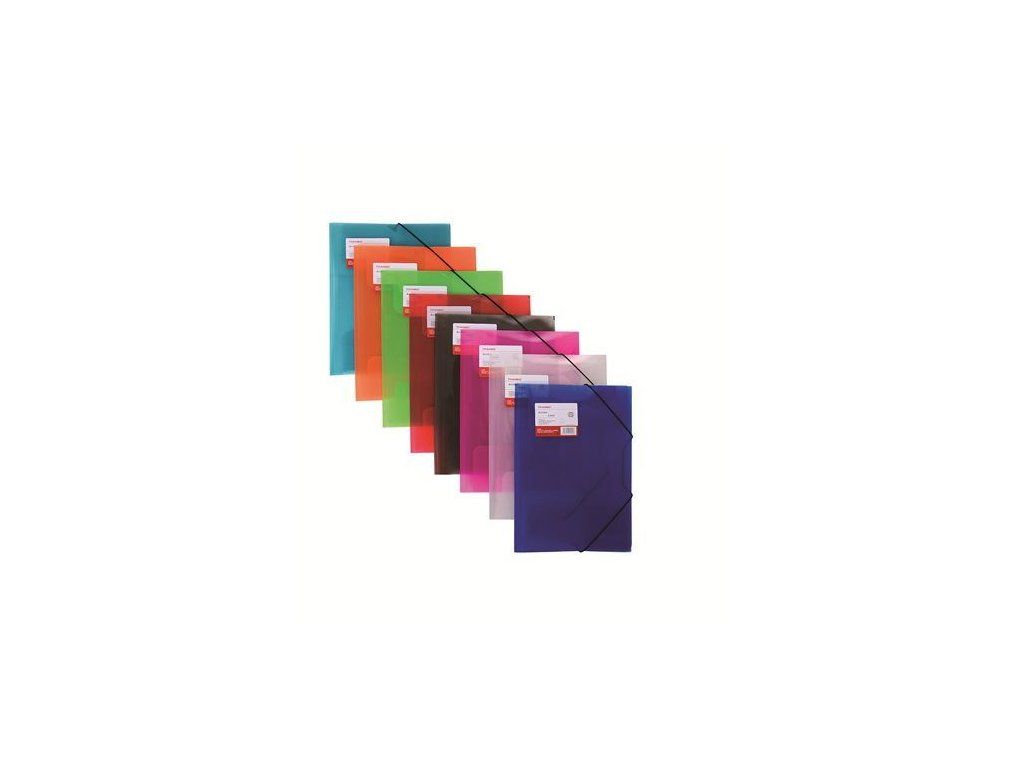 Kancelářská polypropylenová odkládací mapa se třemi chlopněmi, ideální pro organizaci a třídění dokumentů či spisů. Uzavírá se pomocí gumiček a je dostupná v průhledném provedení s diagonálním designem. Nabízí mix osmi barev, jak je uvedeno na obrázku.Doplňkové parametry