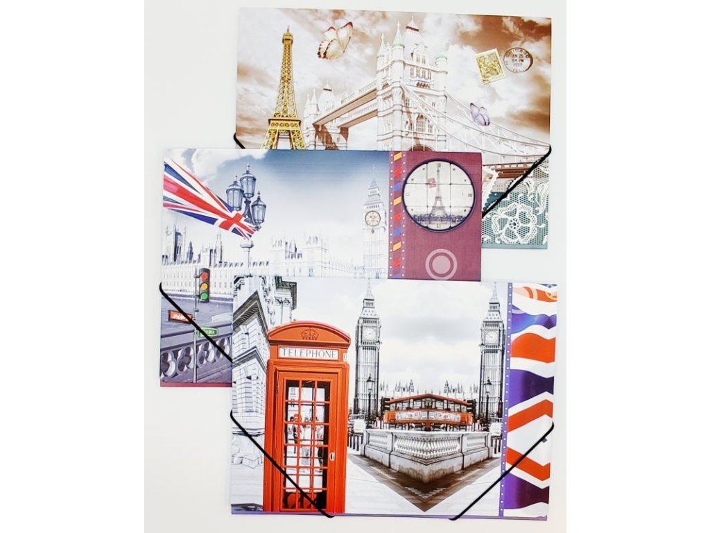 Odkládací mapa s gumou a motivem LONDON/PARIS