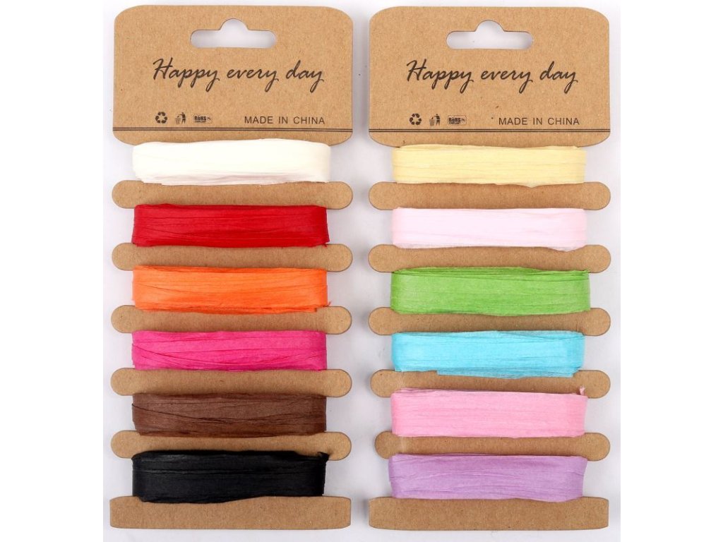 Papírová dekorační stuha 6 barev x 2m návinu, na kartě, každá barva, šíře stuhy 0,5cm, mix barevných kombicaní, balení 12ks, cena za 1 kartu. Vhodné pro balení dárků a kreativní tvoření doma i ve škole.Doplňkové parametry