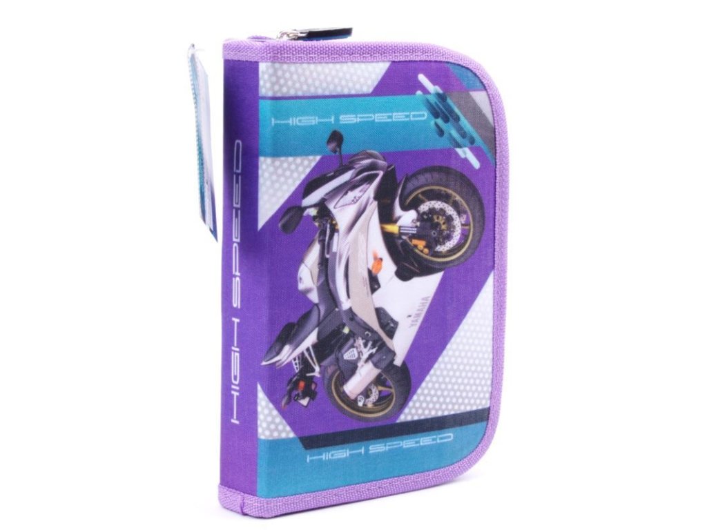 Školní penál jednopatrový, jeden zip, fialový - motorka, rozměr 195mm x 130mm x 40mm váha 0,21kgDoplňkové parametry