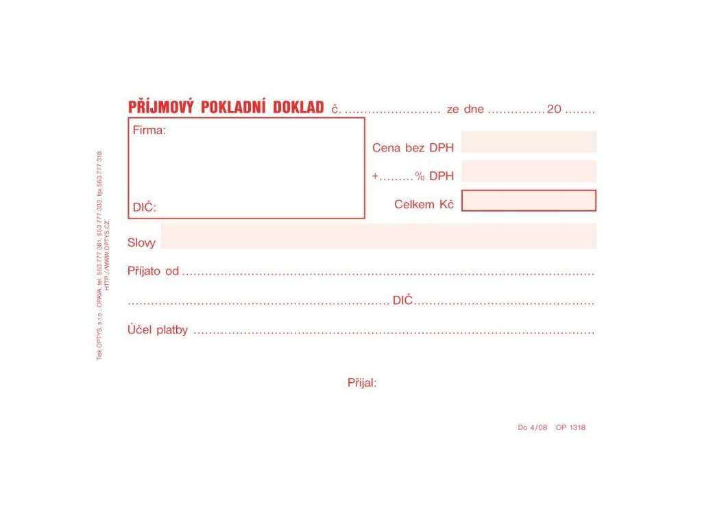 Příjmový doklad A6, jednoduchý, samopropisovací, 50 listů 1318