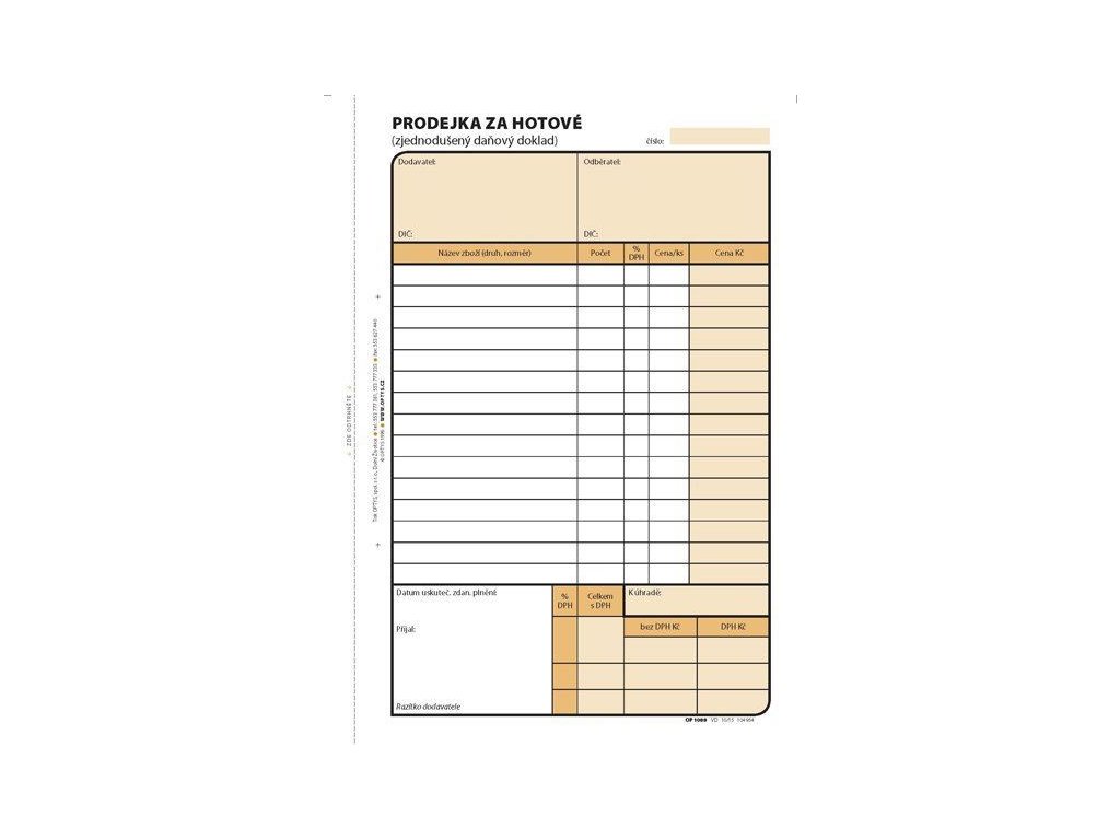 Tiskopis je dle nové legislativy přizpůsoben pro 3. daň z přidané hodnoty, došlo tedy k rozšíření kolonek, samopropisovací, nečíslovaná, formát A5 na výšku, obsahuje 100 listů odtržitelných perforací, se zakládacím děrováním.Doplňkové parametry