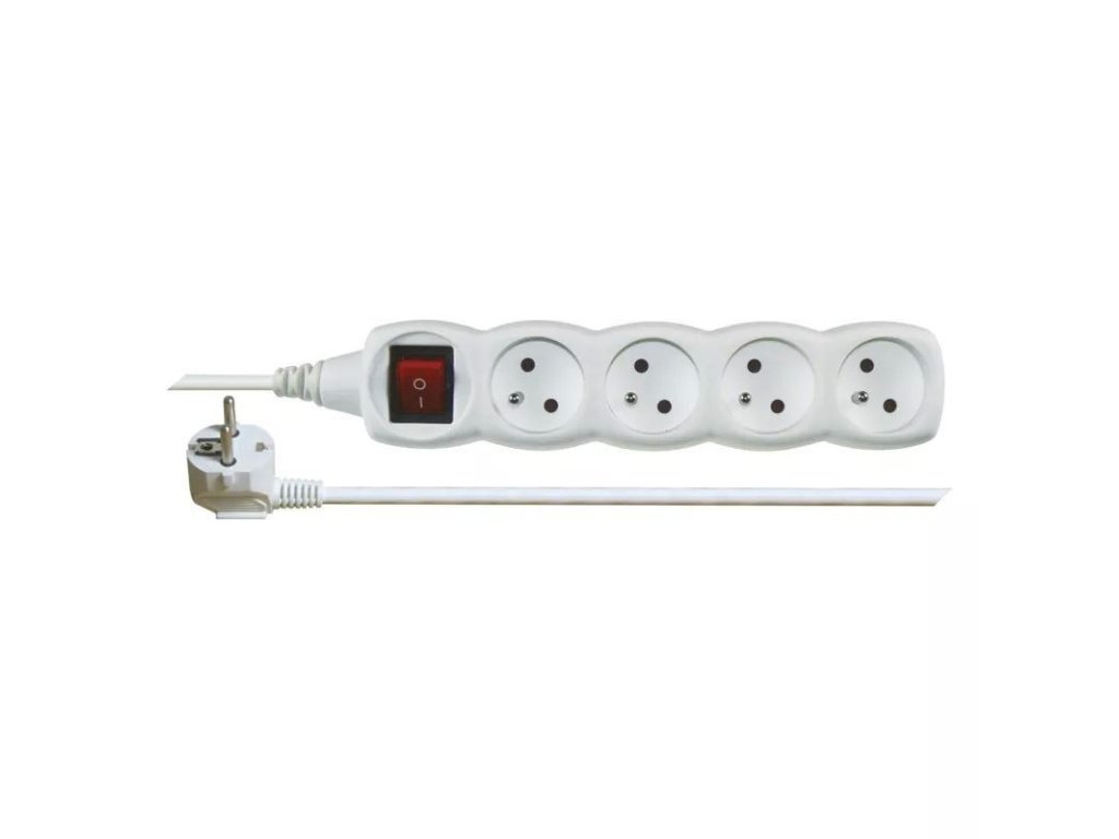 Prodlužovací kabel s vypínačem – 4 zásuvky, 3m, bílý