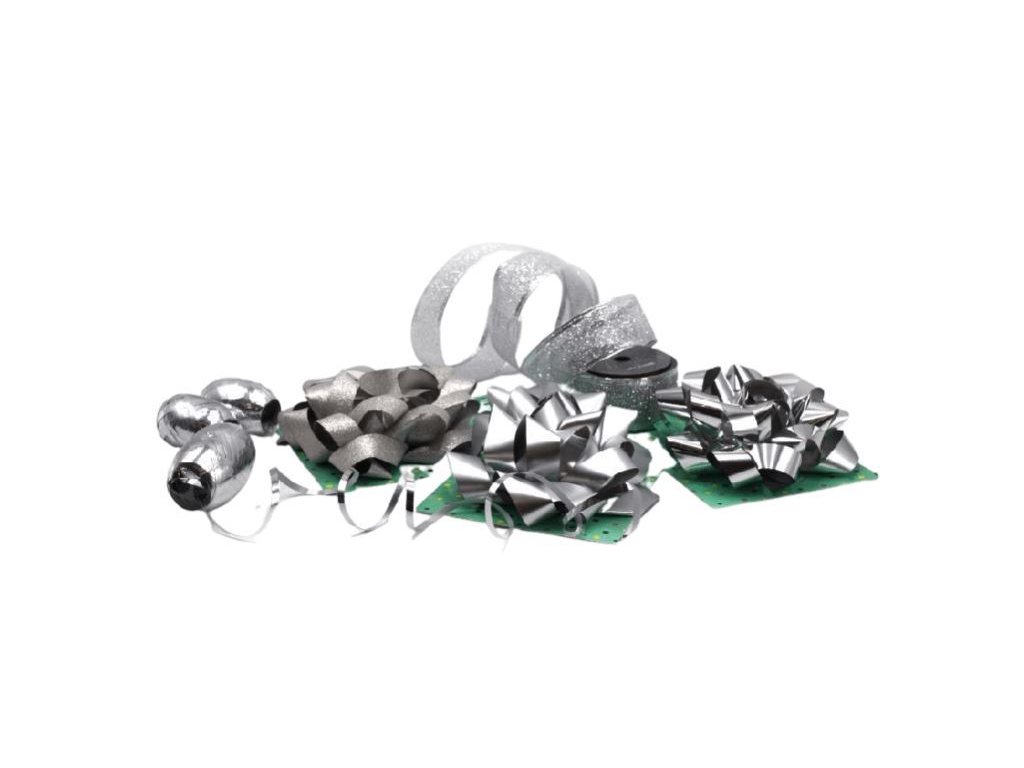 Sada stříbrných stuh a mašlí k balení dárků