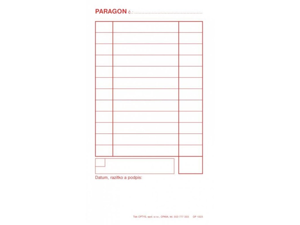 Samopropisovací paragon, 50 listů A6 1323