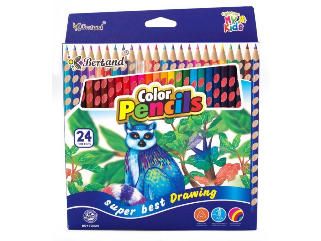 Souprava prořezaných trojbokých pastelek, vysoké kvality. Vynikají světlostálostí, čistotou barev a barevnou škálou čítající 24 různých barevných odstínů. Netoxické dobře ořezávatelné - nekloužou v ruce, vhodné pro malé děti, které se učí malovat a psát.Doplňkové parametry