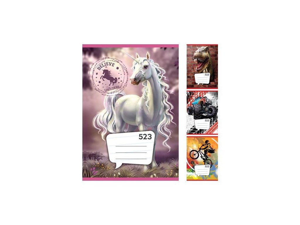 Školní sešit bezdřevý, A5, 20listů, linkovaný. Mix 3 designy, viz obrázek. Bal. 10ks.Doplňkové parametry
