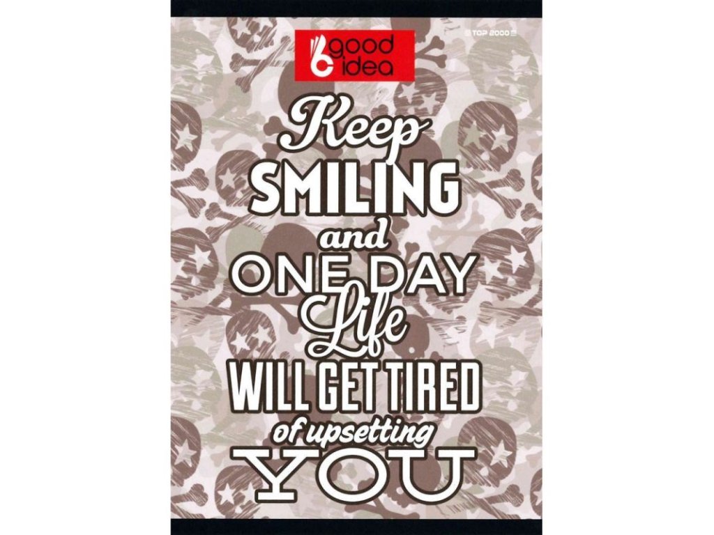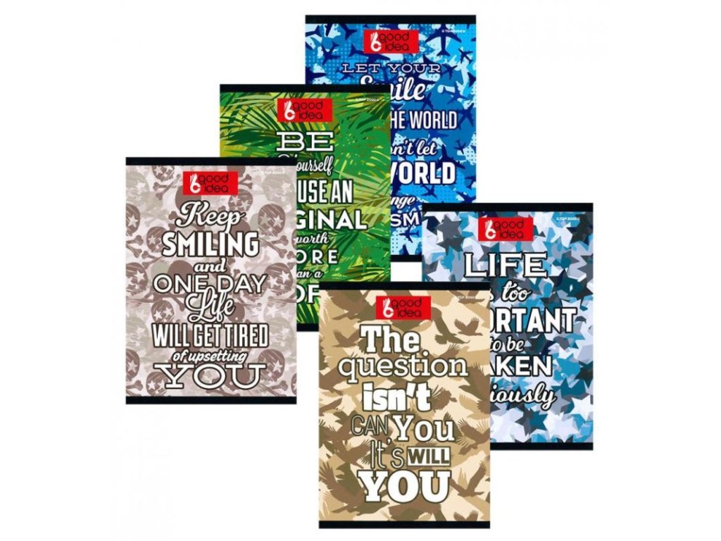 Sešit Camouflage • Formát: A5 • Počet listů: 60 • Typ listů: linkované, výška řádku 9mm • Gramáž papíru: 70g/m² • Obálka: laminovaná, měkké desky • Motiv: anglické texty s texturou v pozadí Balení obsahuje 10 kusů, mix typů.Doplňkové parametry