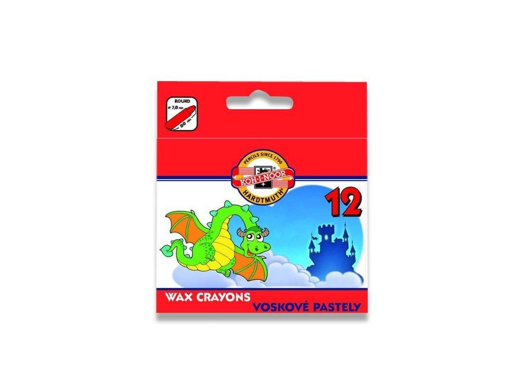 Souprava kulatých voskových pastelů (voskovky), neobsahují toxické ani škodlivé látky, délka voskovky 80 mm, průměr 7,8 mm, balení obsahuje 12 barev.Doplňkové parametry