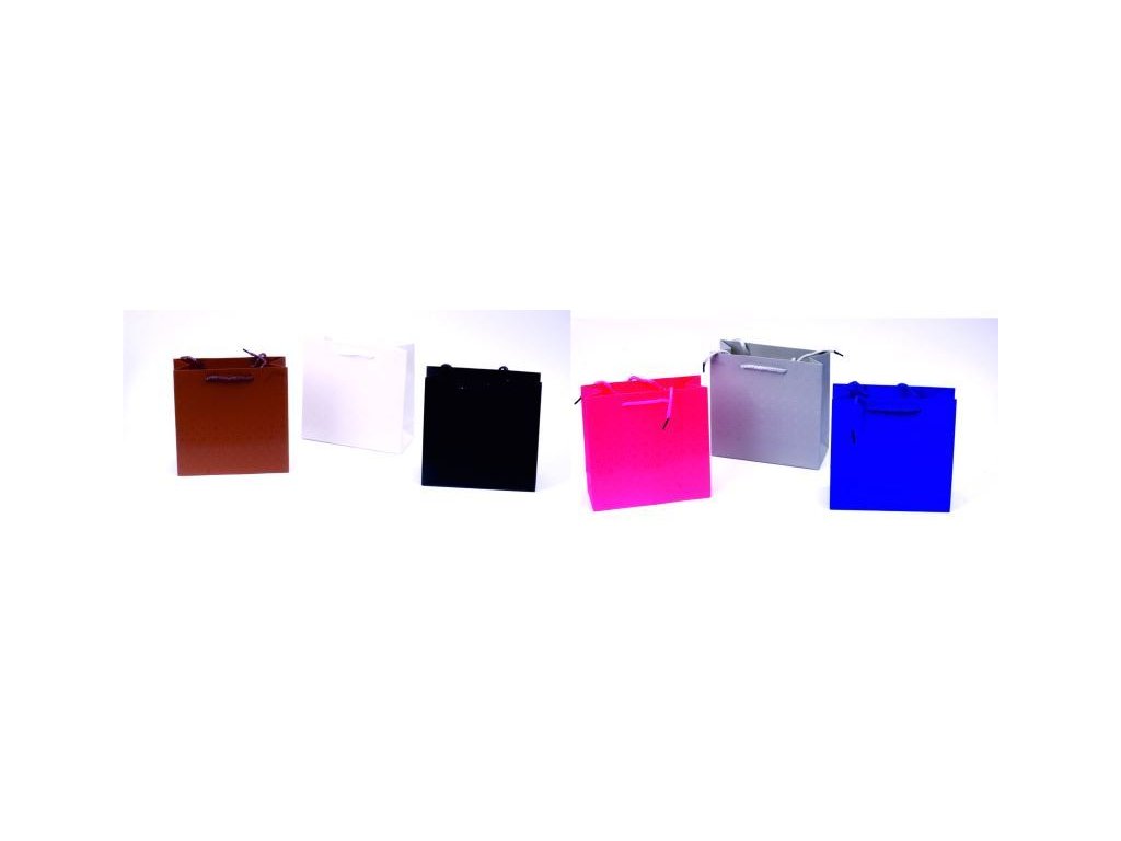 Papírová dárková taška s textilními uchy. Balení po 12 ks. Mix 6 barev.Doplňkové parametry