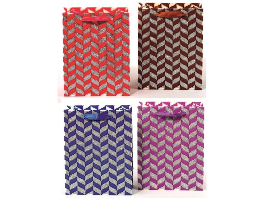 Papírová dárková taška s textilními uchy. Balení po 12 ks. Mix 4 barev.Doplňkové parametry