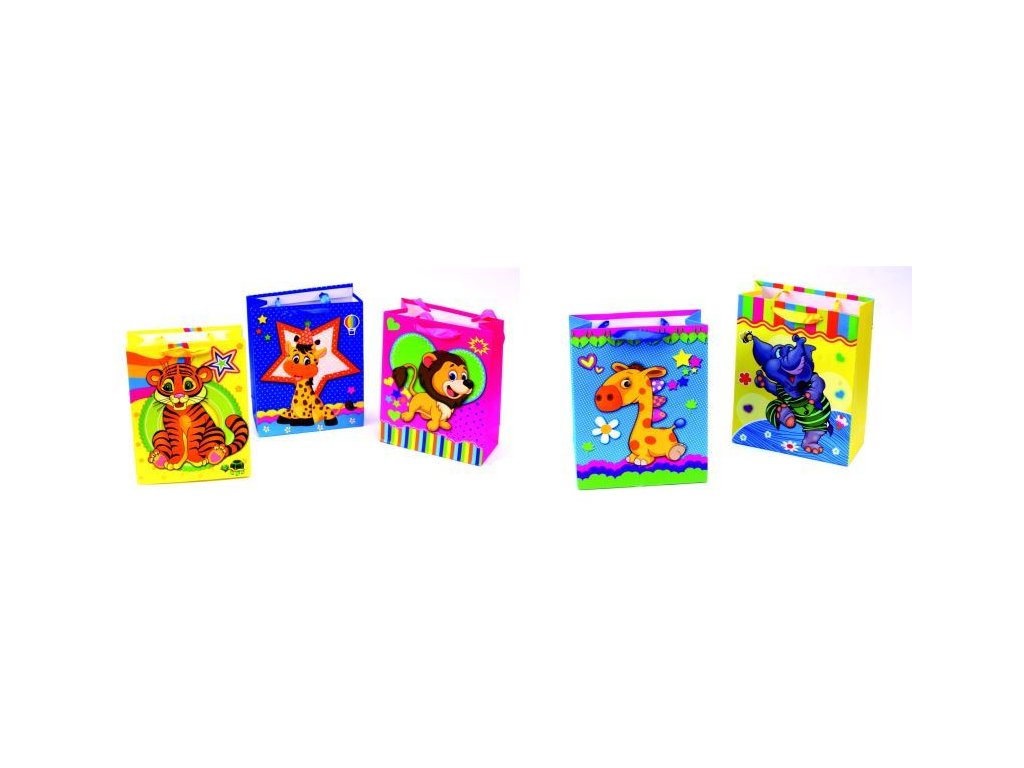 Papírová dárková taška s dětskými zvířátkovými motivy, a s textilními uchy. Mix motivů.Doplňkové parametry