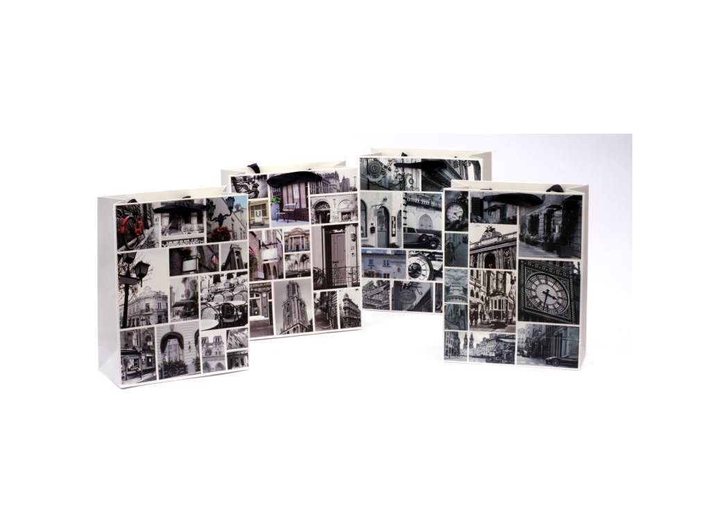 Papírová dárková taška s textilními uchy. Balení po 12 ks. Mix 4 motivů. VÝPRODEJ! Původní cena 21,-Kč, nová cena 13,90 Kč.Doplňkové parametry