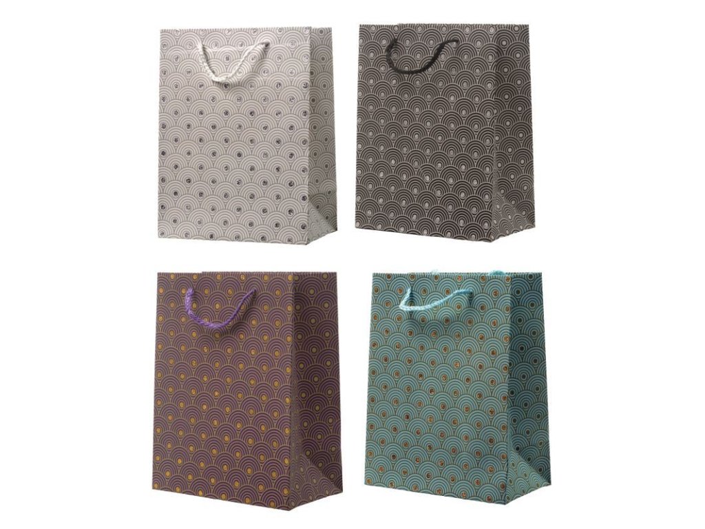 Papírová dárková taška s textilními uchy. Balení po 12 ks. Mix 4 barev.Doplňkové parametry