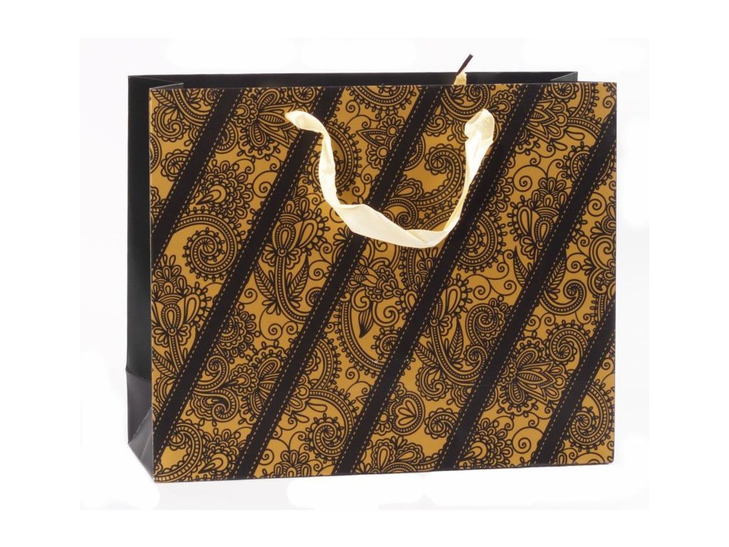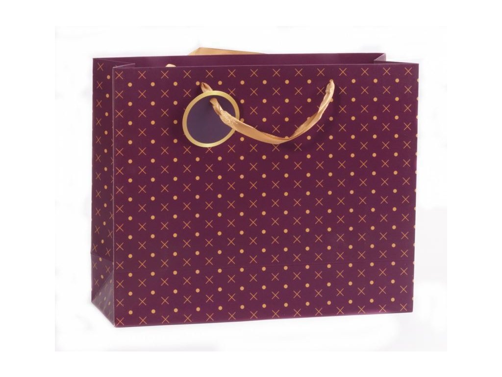 Papírová dárková taška s textilními uchy, kvalitní pevný materiál, luxusní provedení. Mix motivů viz obrázek. Rozměry 310x410x130mm, již jen vínová.Doplňkové parametry