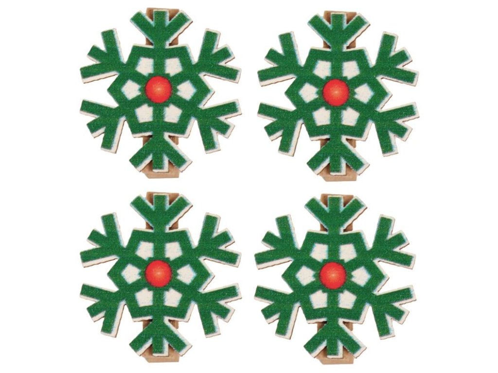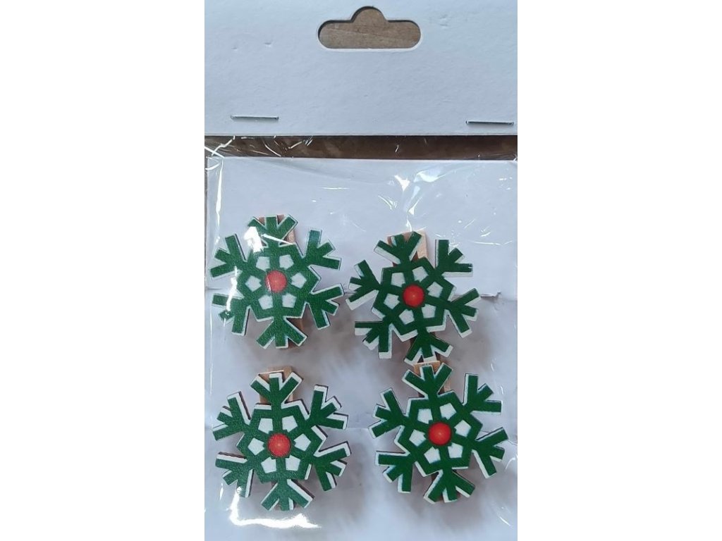 Vánoční dřevěné kolíčky s dřevěnými vločkami, 3,5cm, vhodné k vánočnímu tvoření a dekorování. Tradiční barvy. Cena za celé balelní 4ks.Doplňkové parametry