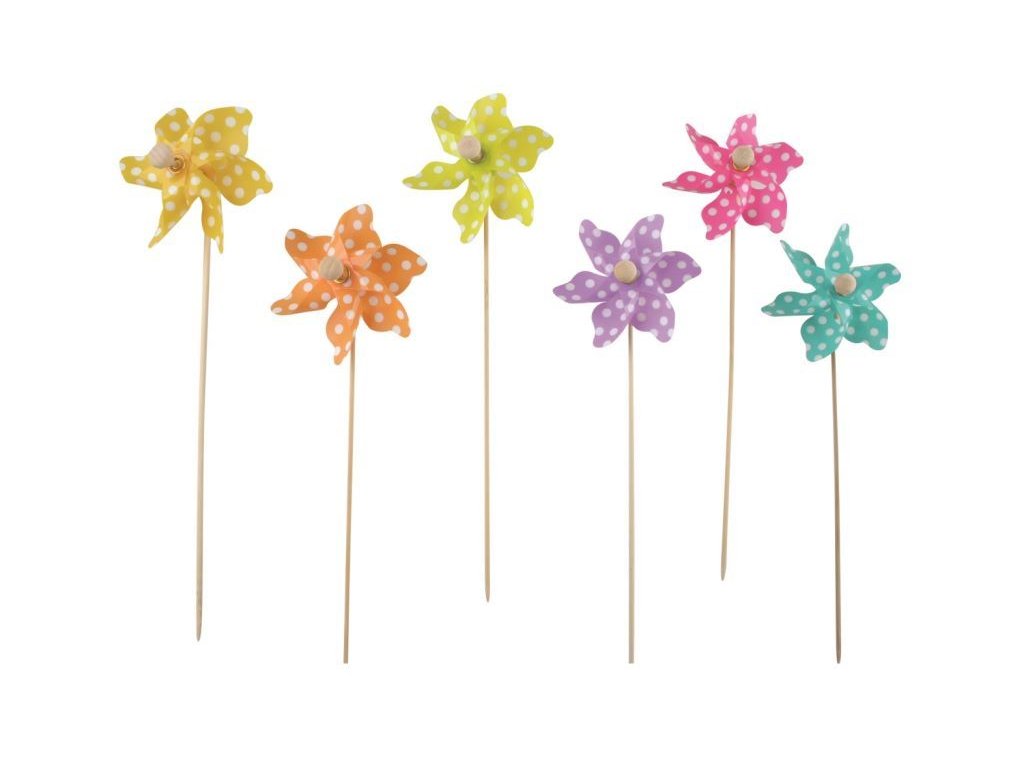 Dekorační točící se větrník plastový, barevný s puntíky, dřevěný zápich, mix barev, viz obrázek, cena za 1ks.Doplňkové parametry