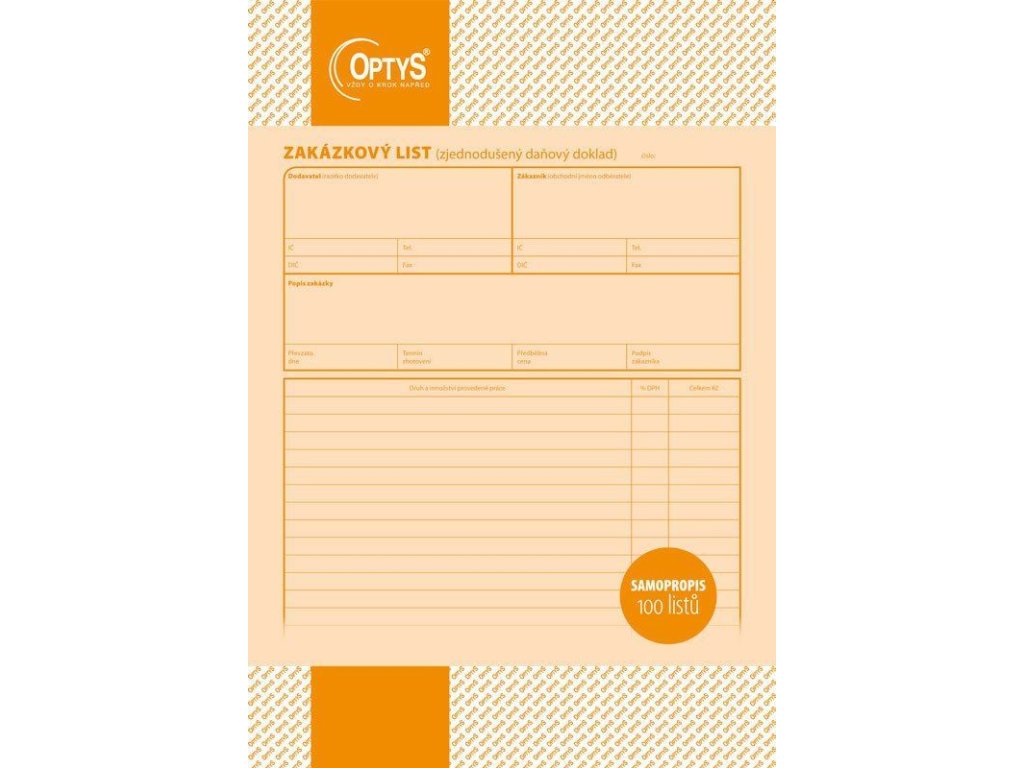 Zakázkový list A4, samopropisovací, 100 listů 1084