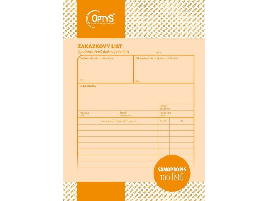 Zakázkový list A5, samopropisovací, 100 listů 1085